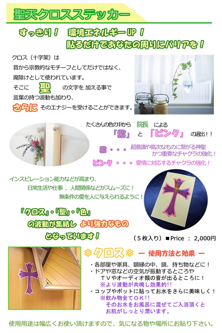 【HGH MIRACLE SUPER X1】新成分追加でリニューアル現在販売している分は7種類の新成分が追加配合された商品となっておりますので、味もリニューアルに伴い多少変更されております。【 髪乃精 GROS 販売開始 】世界初 世界最高峰 女性専用育毛剤サプリ HOME開運グッズ ステッカー 聖天クロスホログラムステッカー(5枚入り) 価格: ¥2,000 (税込) 販売期間: 数量: 組 在庫 ○ 返品についての詳細はこちら 貼るだけでお部屋の浄化をサポートします。お札代わりに1部屋に1枚!